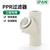 - 保护设备:PPR管件过滤器安装在水管系统的进水口处,能够过滤掉水中的杂质和颗粒物,防止杂质进入家中净水器或热水器等设备,从而延长设备的使用寿命。