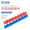 PVC线管排卡的设计亮点在于其独特的结构和安装方式。排卡上设计有与线管直径精确匹配的凹槽或孔洞,确保线管能够轻松插入并稳固固定。同时,排卡还配备了多种固定装置,如螺丝、卡扣等,方便用户根据实际安装环境选择合适的固定方式。此外,排卡的设计还考虑了美观性和实用性的平衡,通过紧凑有序的排列方式,不仅提高了线路的美观度,还便于后续的维护和检修工作。